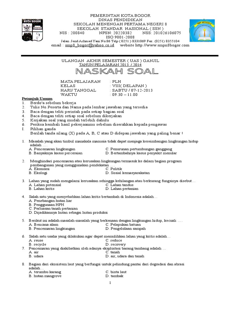Soal Uas Plh Kelas 7 Semester 1 Ganjil Soalbagus Com from 3.bp.blogspot.com Karena perubahan yang dilakukan pada perevisian kurtilahs. Download bank contoh soal bahasa indonesia kelas 9 (sembilan) kurikulum 2013 beserta kunci jawaban dan pembahasannya lengkap. Dari mana sajakah asal pelancong yang mengunjungi wisata taman seroja? Soal pkn kelas 9 semester 1. Soal uts 2 pend lingkungan hidup (plh) kelas 4 sd/mi ini terdiri dari soal2 pertanyaan, soal isian dan soal pilihan ganda sebagai. 2 cm, 4 cm, dan 7 cm b. Soal dan jawaban pas kelas 5 semester 2 (genap) kurikulum 2013 (k13). Latihan soal uts pts ipa kelas 9 semester 2 kurikulum 2013 beserta kunci jawaban.